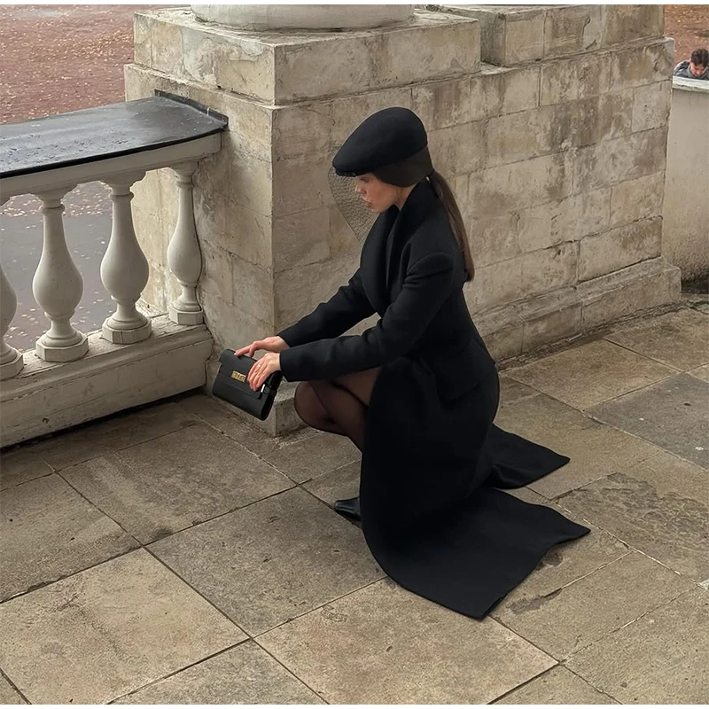 Faux Fur Parka Women Shoulder Pad Slim Waist Long Sleeves One Button Coats Female 2025 Winter Warm Solid Casual Outwears Lady