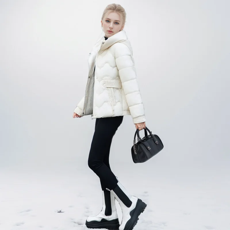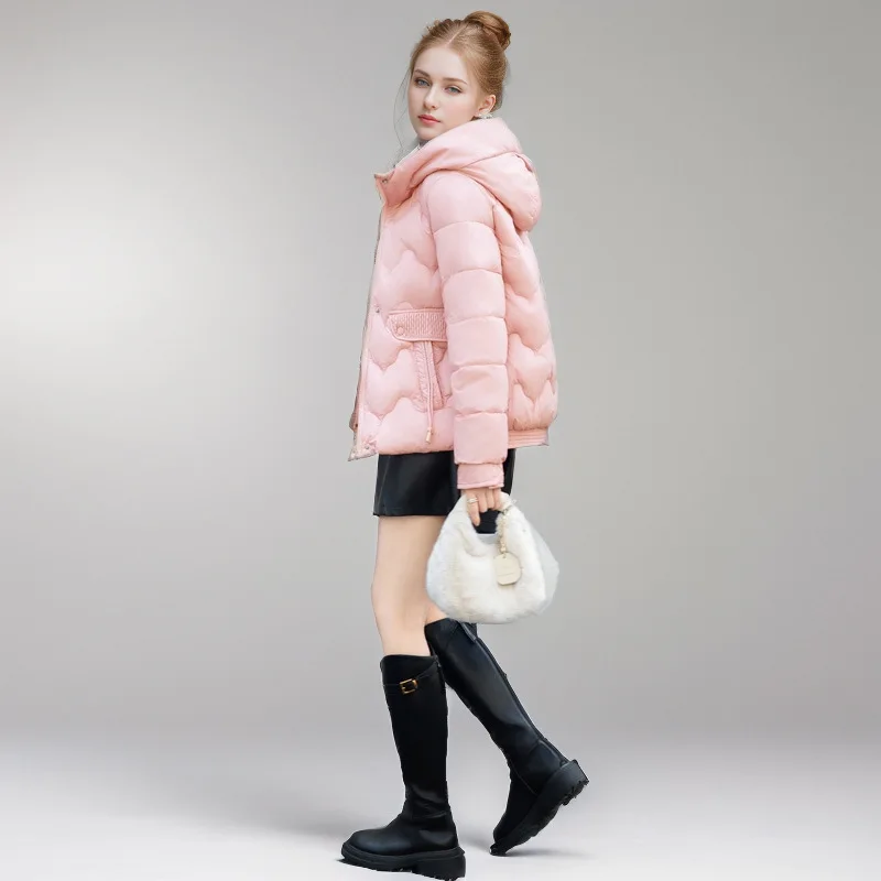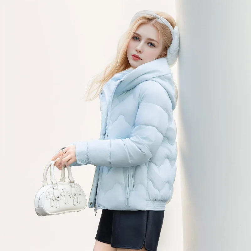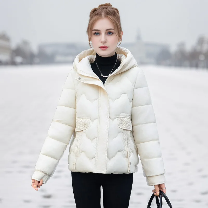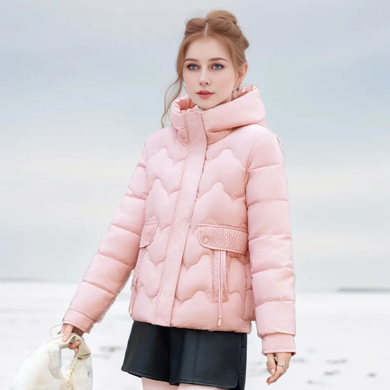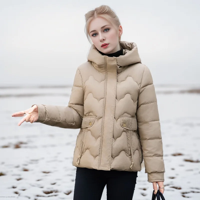 Drawstring Winter Women's Parka Jacket Solid Stand Collar Hooded Zipper Fly Padded Coat For Female Slouchy-Style Lady's Jacket