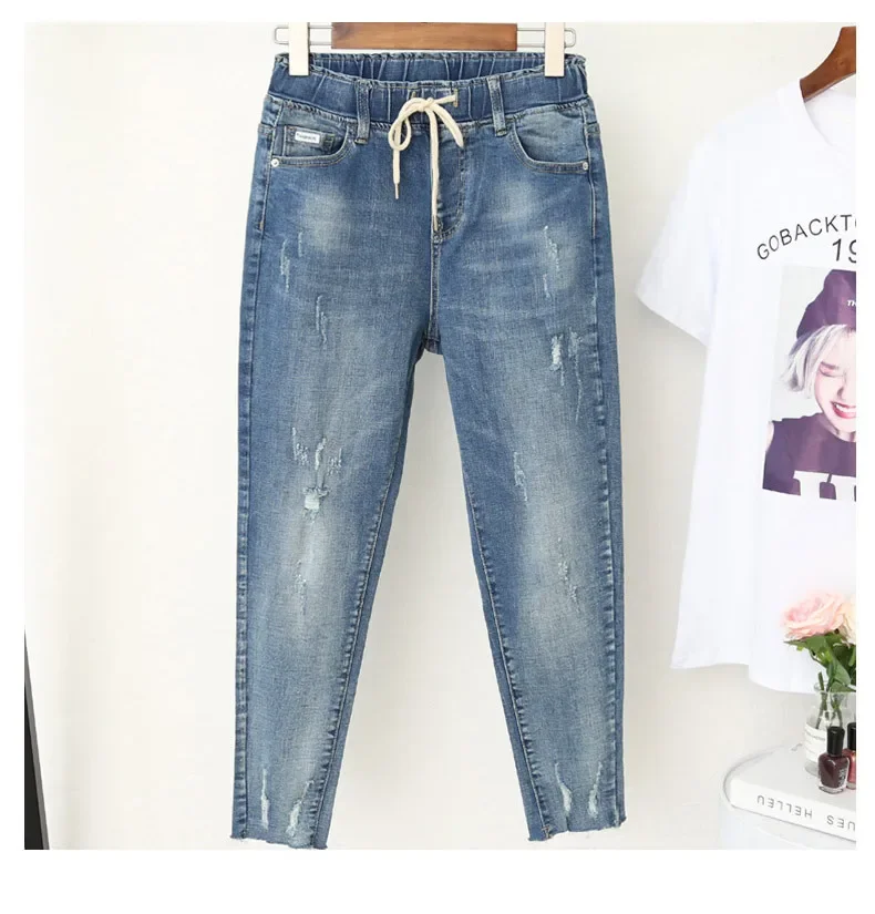 XL-6XL Plus Size jeans for Women Mom Jeans Woman Elastic High Waist Blue BaggyJeans Denim Ripped Jeans Female Harem Pants